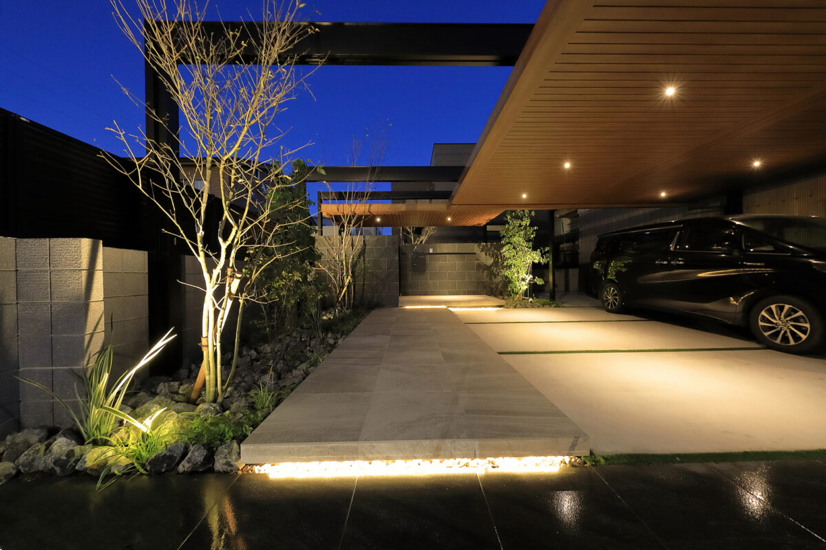 単なる「駐車スペース」や「門まわり」に留まらず、機能美と高級感、そしてプライバシー保護を兼ね備えた、上質な空間になりました。