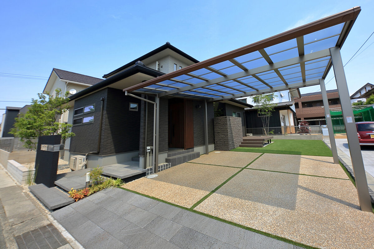 駐車スペースは味わい深い洗い出しで施工。日々の使いやすさと美しさを両立させました。
