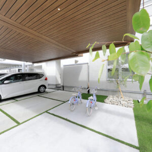 住まいと調和するようデザインを追求し、実用性と心地よさを両立させました。 敷地の形状に合わせて配置されたU-styleのカーポートは、車3台分の駐車スペースと自転車置き場を確保。 雨の日でも濡れることなく、玄関までスムー […]