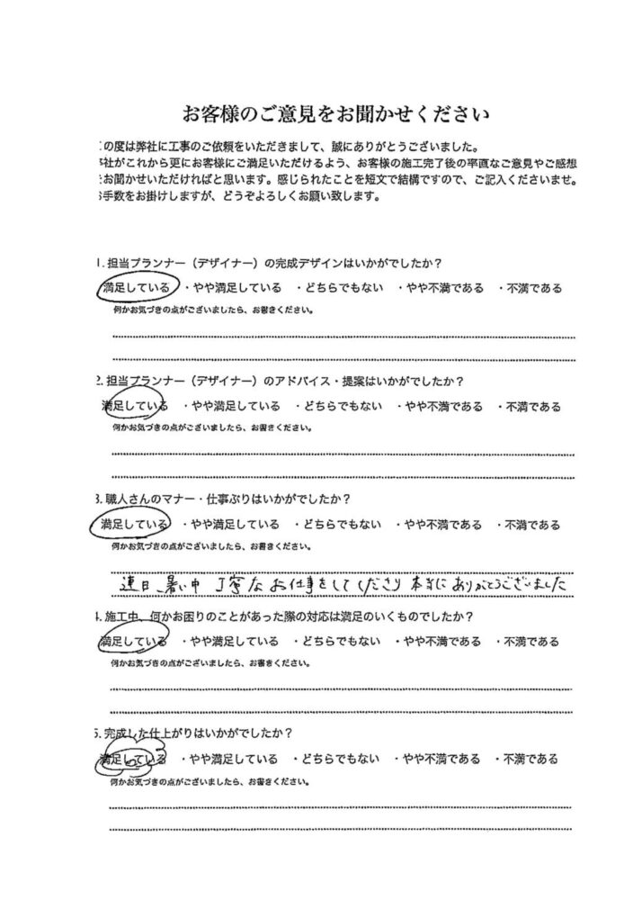 この度は本当にありがとうございました。工事中も都度ご連絡をいれていただいたり、とても安心できました。職人様や河手様のアドバイスもあり、とても満足な仕上がりになりました。知人にも全然ちがう家みたいー!!と完成した外構をほめてもらえたりと嬉しい限りです。短い間でしたがありがとうございました。また何かあれば相談させて下さい。