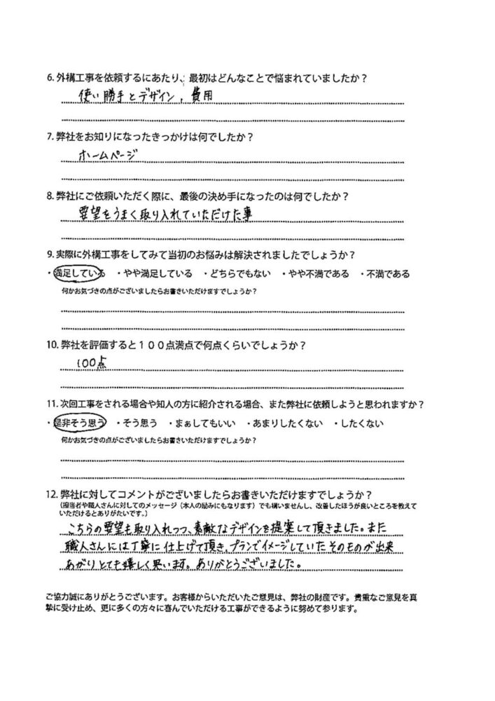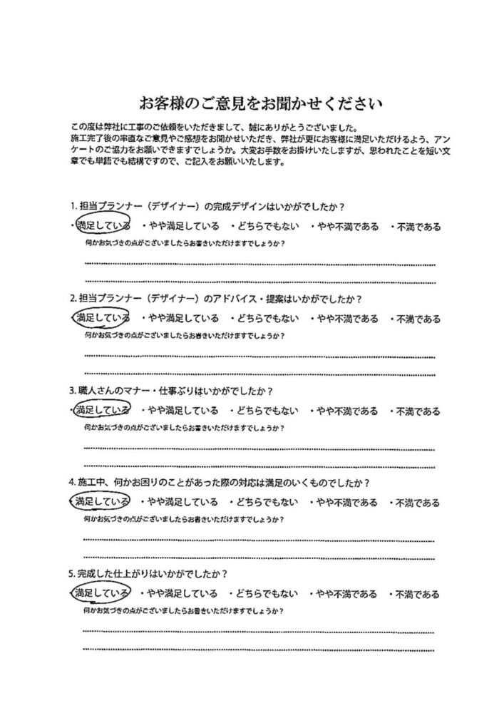 こちらの要望も取り入れつつ、素敵なデザインを提案して頂きました。また職人さんには丁寧に仕上げて頂き、プランでイメージしていたそのものが出来あがりとても嬉しく思います。ありがとうございました。
