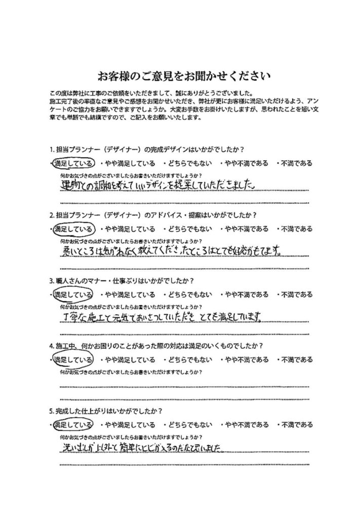 河手社長も職人さんもこまめに現場に来ていただき作業もスムーズで本当にありがとうございました。洗い出しも感じがよくとても気にいっています。