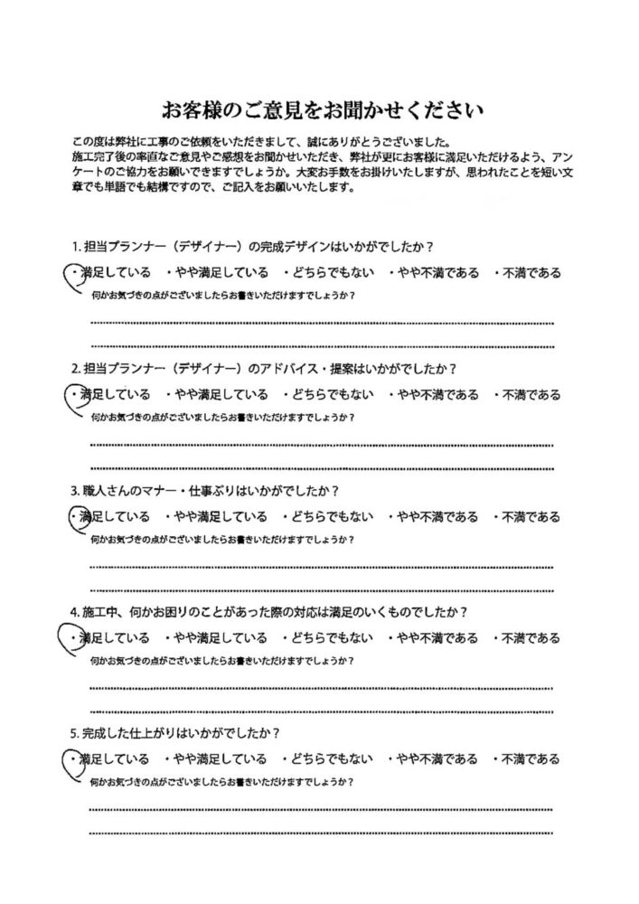 デザインから工事まで、本当にお世話になりました。「これが、プロなのか。すごいな。」と驚く場面がたくさんありました。出来上がりも本当に満足しています。また機会がありましたらよろしくお願い致します。
