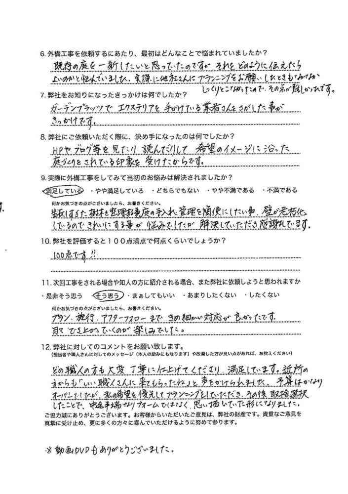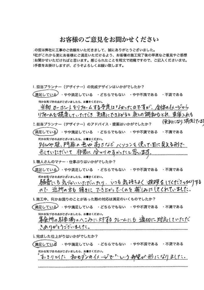 どの職人の方も大変丁寧に仕上げてくださり、満足しています。近所の方からも「いい職人さんに来てもらったね」と声をかけられました。予算はかなりオーバーでしたが、私の希望を優先してプランニングをしていただき、その後、取捨選択したことで、中途半端なリフォームではなく、思い描いていた形になりました。