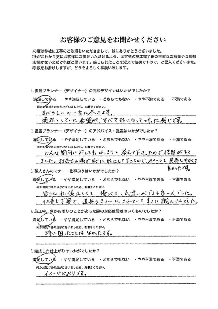 社長様、この度はありがとうございました。大満足しています。家よりも(笑)。お願いする前から何度も足を運んで現場確認して下さったり、何よりも仕事が好きで楽しそうにプランを提案して下さったり、作業される姿勢に是非お願いしたいと思いました。ご子息様も頑張られているので、これからも何代にもわたって、皆さんにすてきな外構を届けて下さることを願っております。今後ともどうぞよろしくお願い致します。
